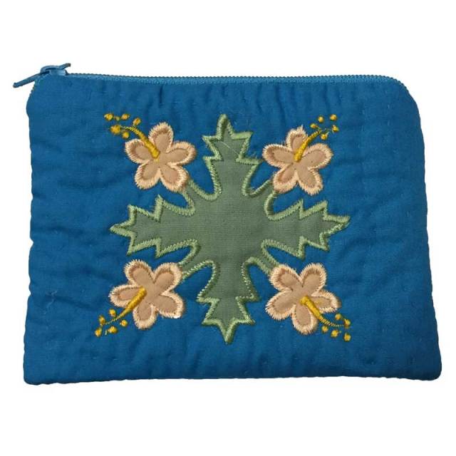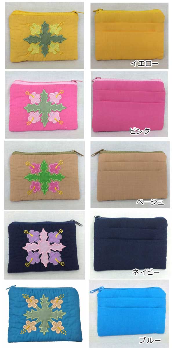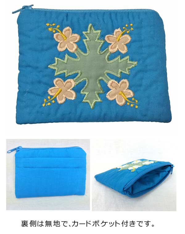 ハワイアンキルト Hawaiian Quilt ハイビスカス柄スクエアコインケース