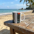 伊豆・神子元の海をイメージし、ダイナミックに泳ぐシュモクザメ(ハンマーヘッドシャーク)の群れをデザインしたオリジナルマグカップです。