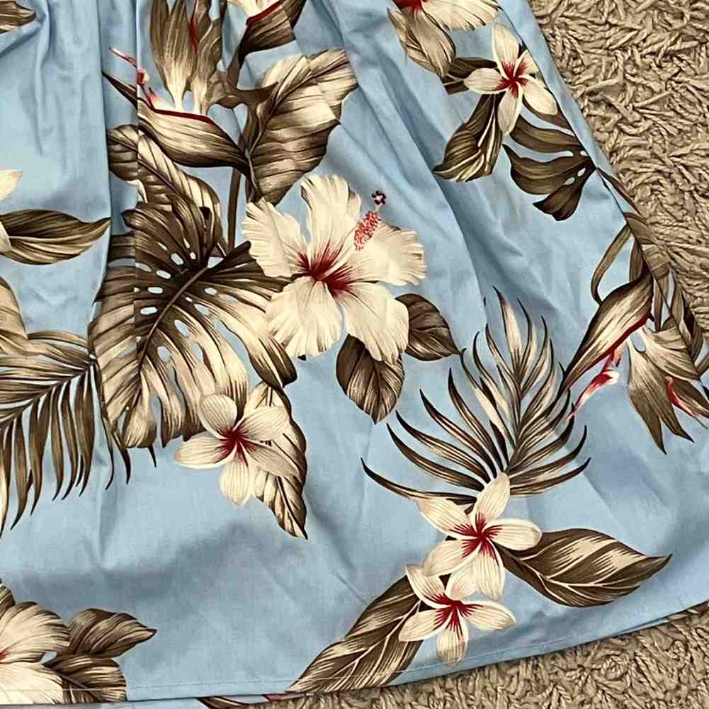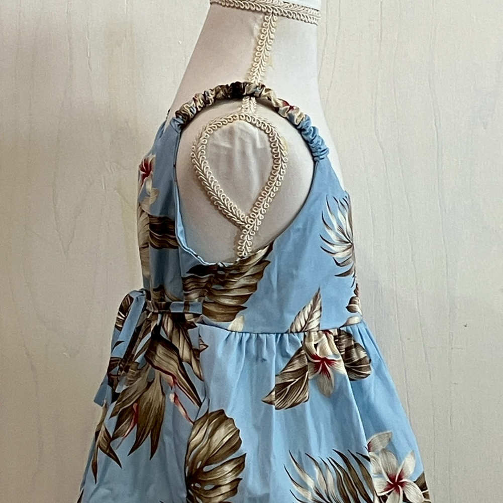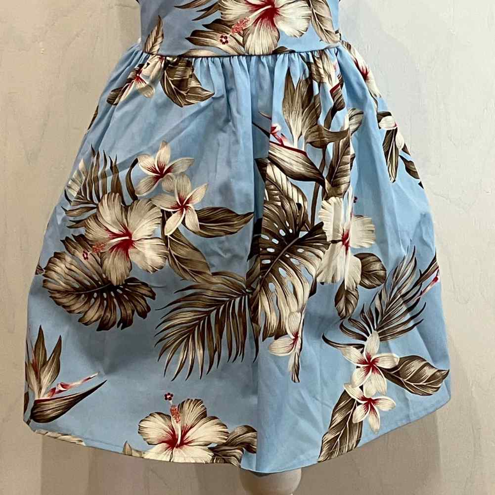 子供服ハワイアン キッズワンピース ライトブルー ハイビスカス モンステラ リーフ |