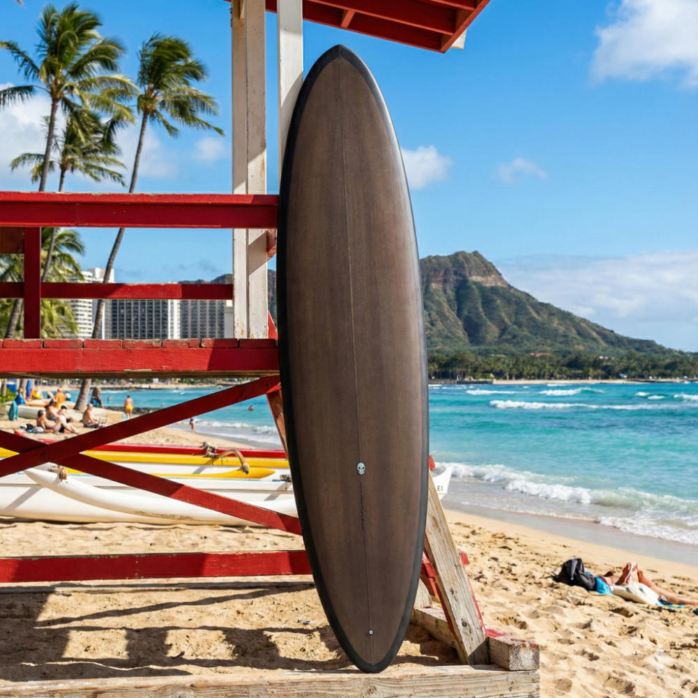 ビーチブレイクからポイントブレイクまで、幅広い波質・サイズでその真価を発揮する、万能かつエレガントなミッドレングスボードです。