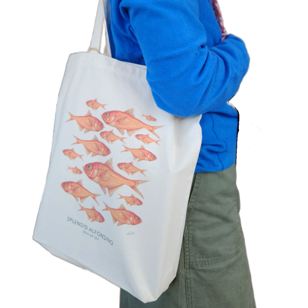 南伊豆在住のイギリス人画家による、リアルでまるで今にも動き出しそうな、お魚プリントトートバッグです。
