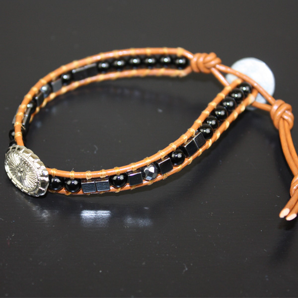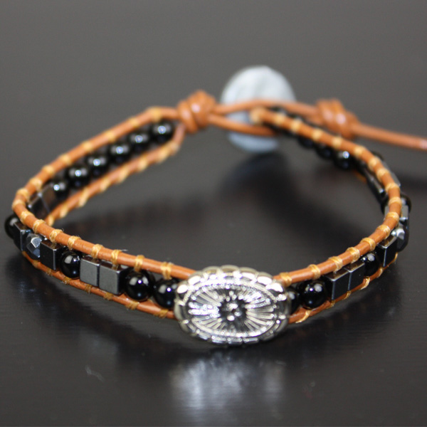 人気のラップブレスの中央にコンチョをつけたAQUAハンドメイドラップブレス