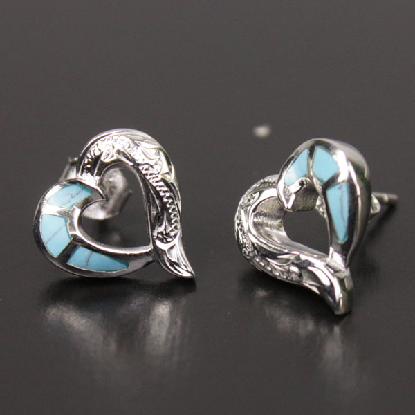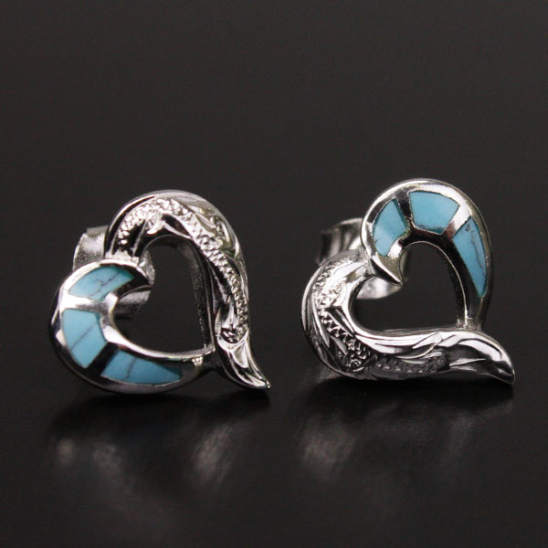 ハワイアンジュエリー シルバーピアス ハート ターコイズ スクロール