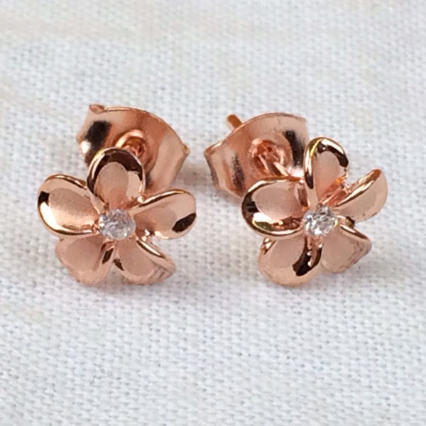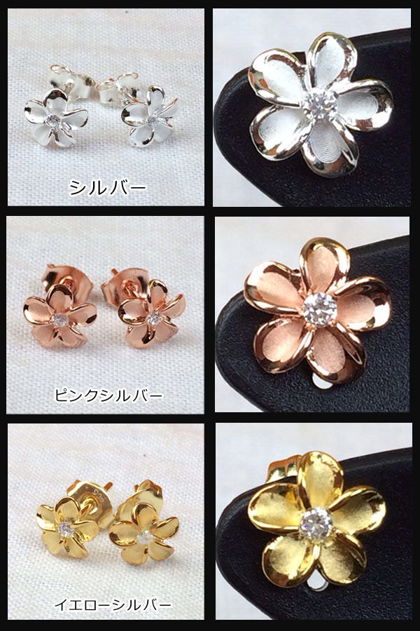 ハワイアンジュエリー ジルコニア付きプルメリアキャッチピアス8mm/SILVER925 アクセサリー ギフト
