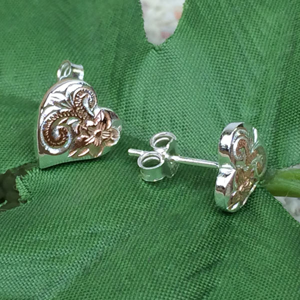 【品名】 ハワイアンジュエリーシルバー キャッチピアス ハート プルメリア