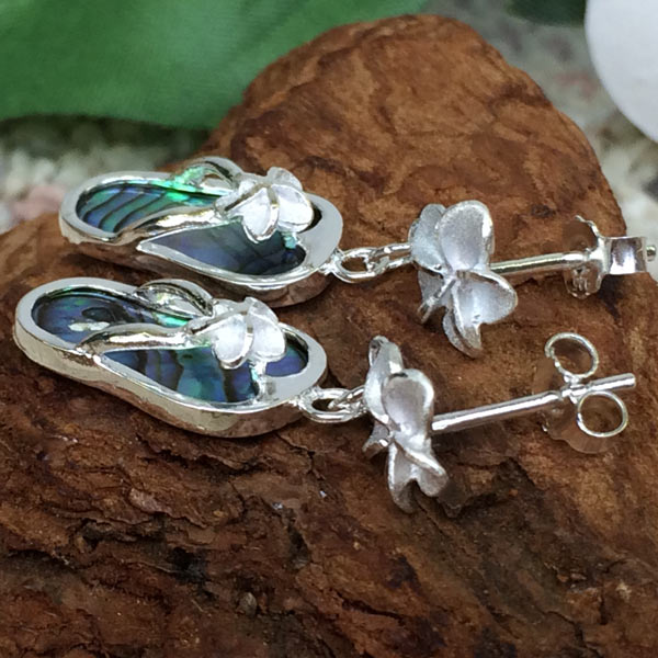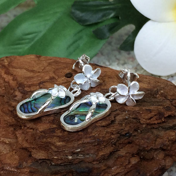 ハワイアンジュエリーシルバー キャッチピアス オパールビーチサンダルプルメリア
