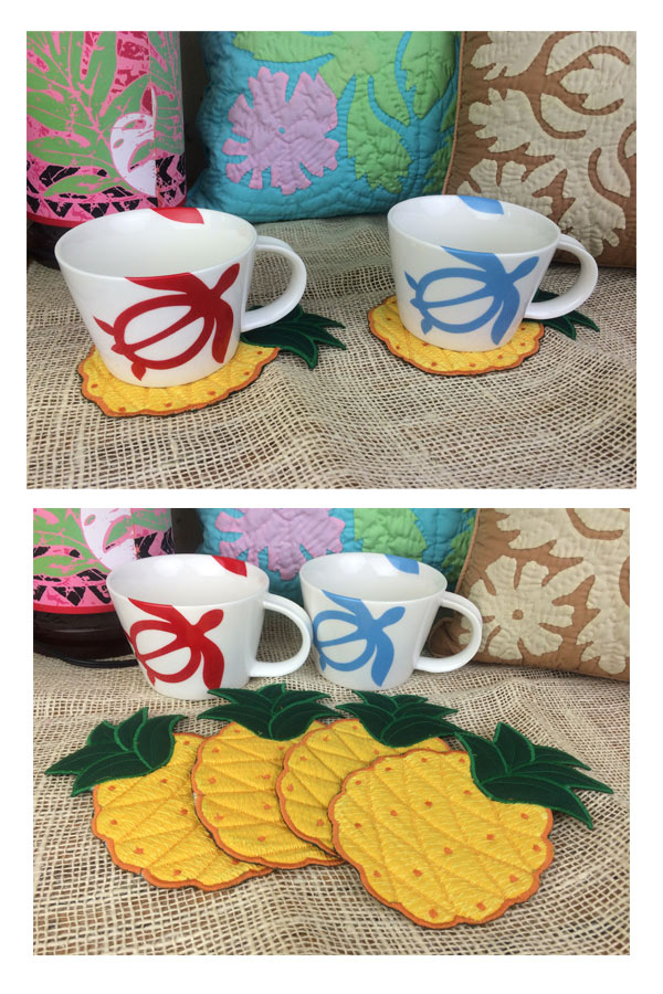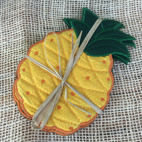 Hawaiian quilt ハワイアンキルトグッズ パイナップル型 コースター4枚セット