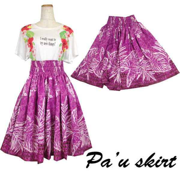 パウスカートシングル大人用 モンステラ柄 パープルピンク系/フラダンス