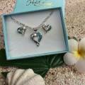 ハワイアンジュエリー ハート ターコイズ シルバーピアス ネックレスセットBOX入り/スクロール