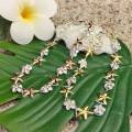 コーティング加工のスターフィッシュと、小粒のプルメリアのシルバーブレスレットです。 プルメリアの中央には、ジルコニアがキラリ★と光る可愛いブレスレットです。長さ調節ができるので、女の子へのギフトにもおススメです。