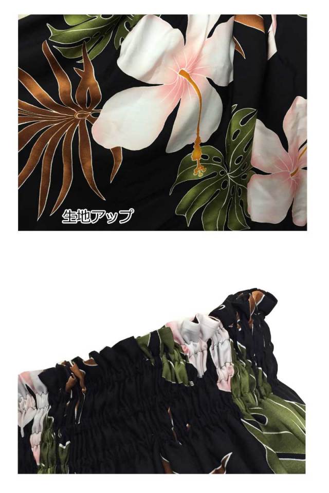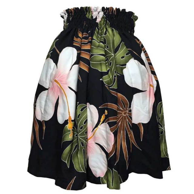パウスカートシングル大人用 ブラック モンステラ×ハイビスカス柄/フラダンス