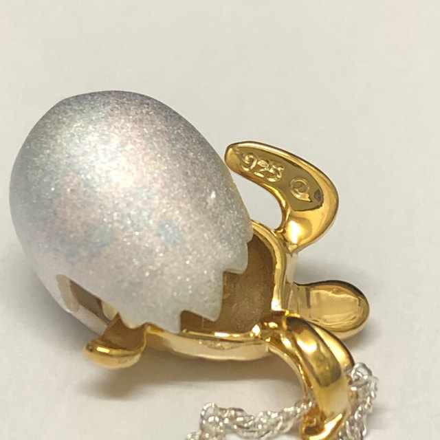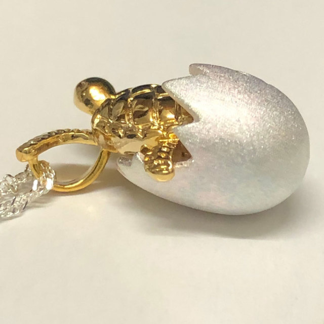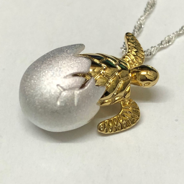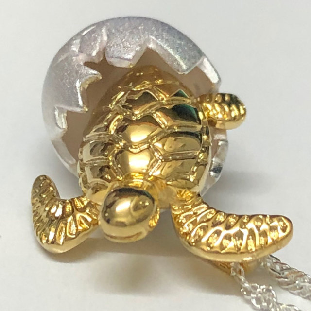 ウミガメのことをハワイ語でhonuといい、神聖な生き物として神様からの使い、幸運を運んでくれる”海の守り神”として敬愛されてきました。柔らかい曲線のタマゴの中から産まれたての赤ちゃんホヌがキュートで、表面にタマゴのひび割れまで細かく細工がしてあります。