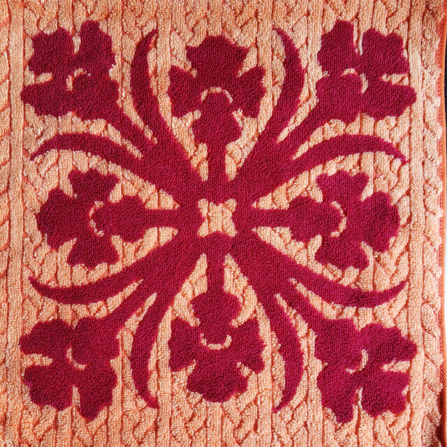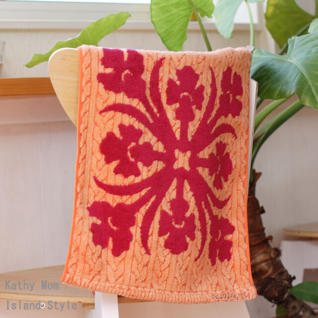 ハワイアンキルト作家、キャシー中島さんプロデュースのフェイスタオルです。 鮮やかな色彩が魅力のハワイアンキルト柄のオシャレなフェイスタオルです。 無撚糸を使用し、シャーリング加工を施すことにより、ふんわりと柔らかな肌触りに仕上げています。