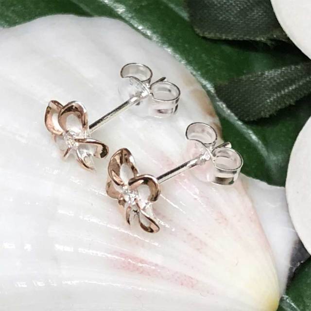 ハワイアンジュエリー シルバー925 プルメリアキャッチピアスピンクシルバーライン/hawaiian jewely