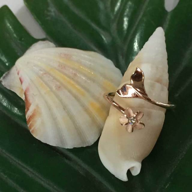 ハワイアンジュエリー ピンクシルバートゥーリング ホエールテール×プルメリア/ピンキーリング Toe Ring 足用 指輪