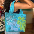 ハワイアンキルト ハンドバッグ ブルータイダイ ブルーハイビスカス柄/ Hawaiian quilt レディースバッグ
