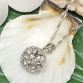 ボール状に並べたプルメリアの中央のジルコニアがキラキラ光る!ハワイらしいペンダントヘッドとチェーンがセットに♪