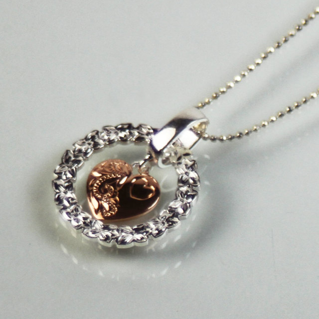 | ハワイアンジュエリー ネックレス チェーン付き ペンダント サークルハート ピンク シルバー |