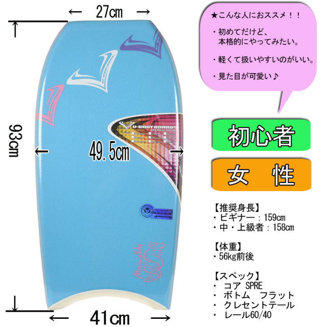 | ボディボード ブイボディボード ベーシック マーメイド 38.5インチ 98cm MARMAID V Bodyboard 女性用 初心者 ビギナー |