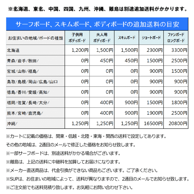 北海道・東北・九州・沖縄・離島は別途追加個別送料がかかります。