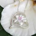 | シルバーチェーン付きハワイアンジュエリー ハートinプルメリアネックレス シルバー×ピンクジルコニア/ハワイアンアクセサリー SILVER925 |