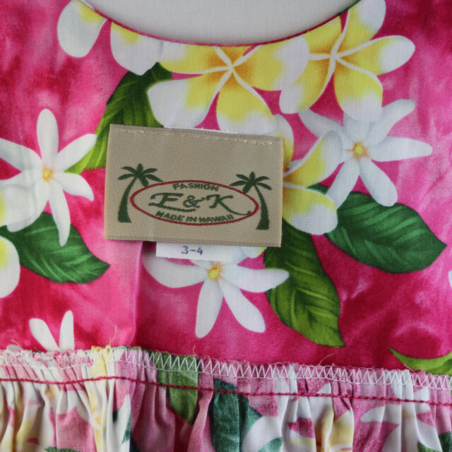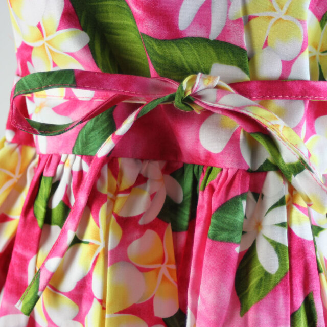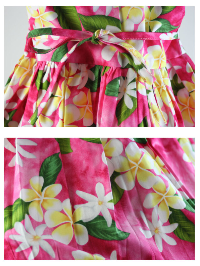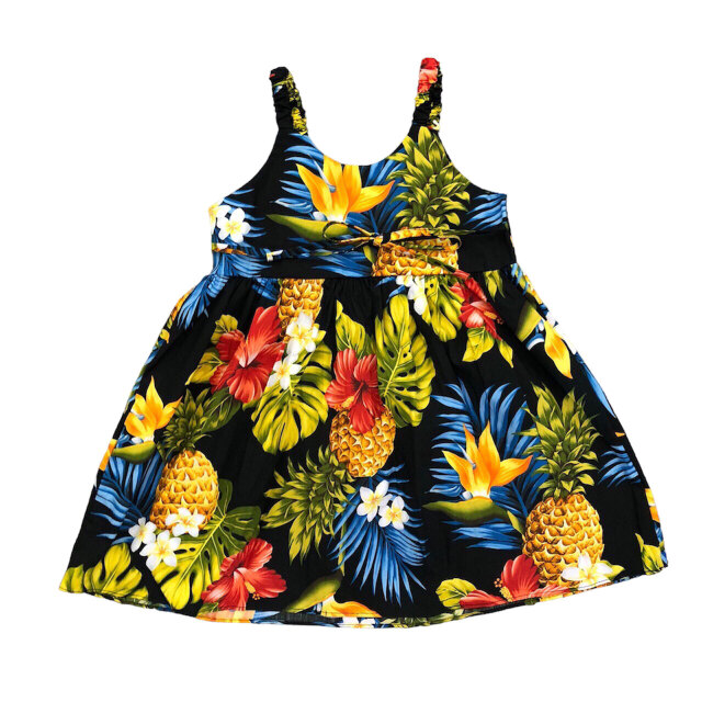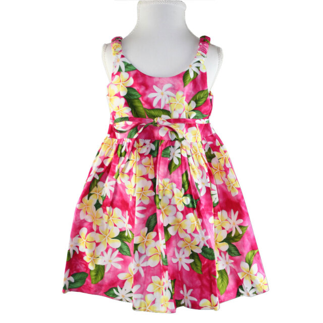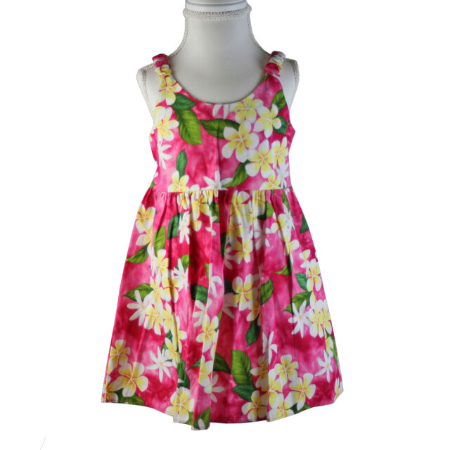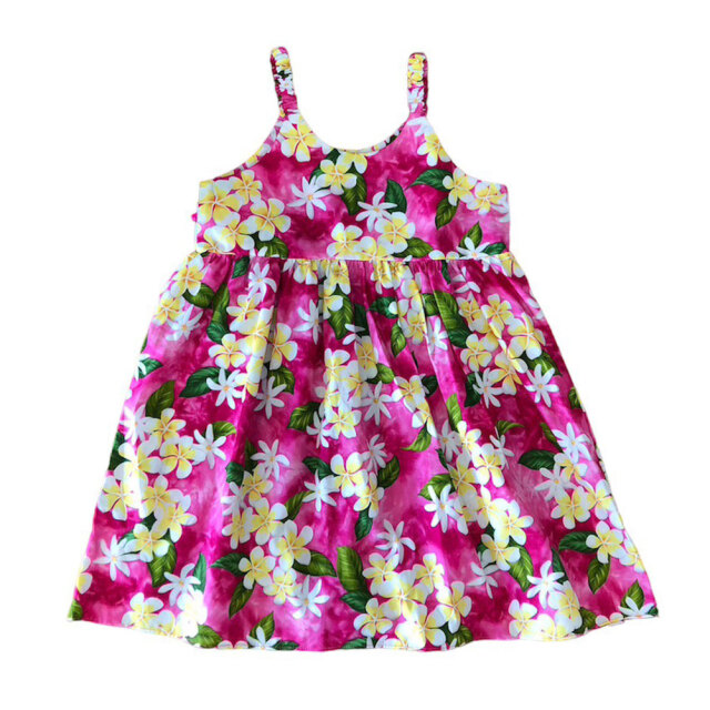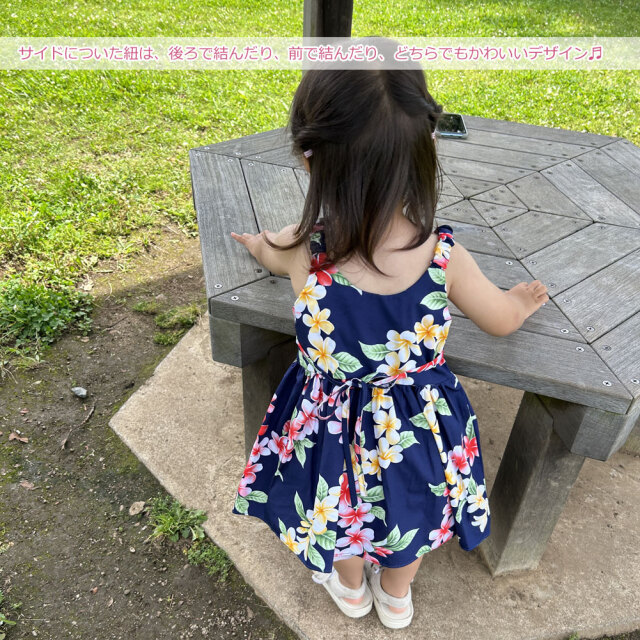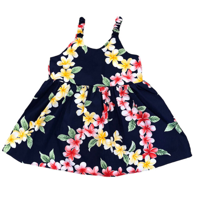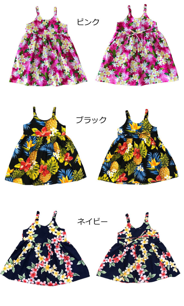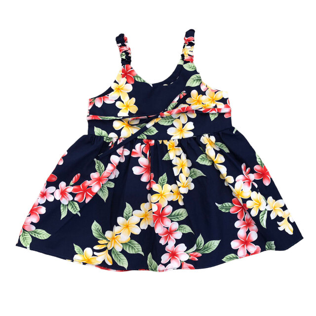 子供服ハワイアン キッズワンピース ハワイアンフラワー ピンク ブラック ネイビー プルメリアティアレ ハイビスカス
