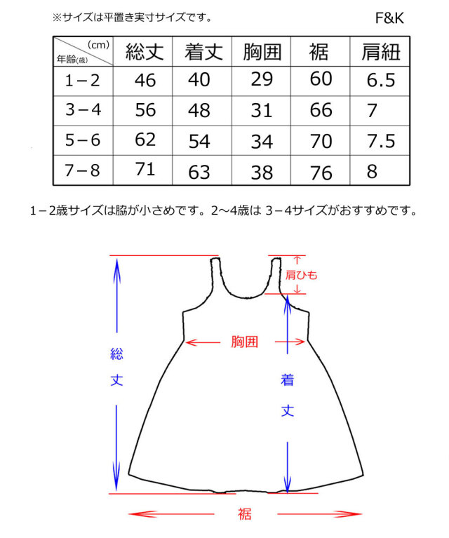 ■1-2歳:・着丈:40cm ・身幅:29cm(少し脇が小さめです2歳児は3-4歳がおすすめ)