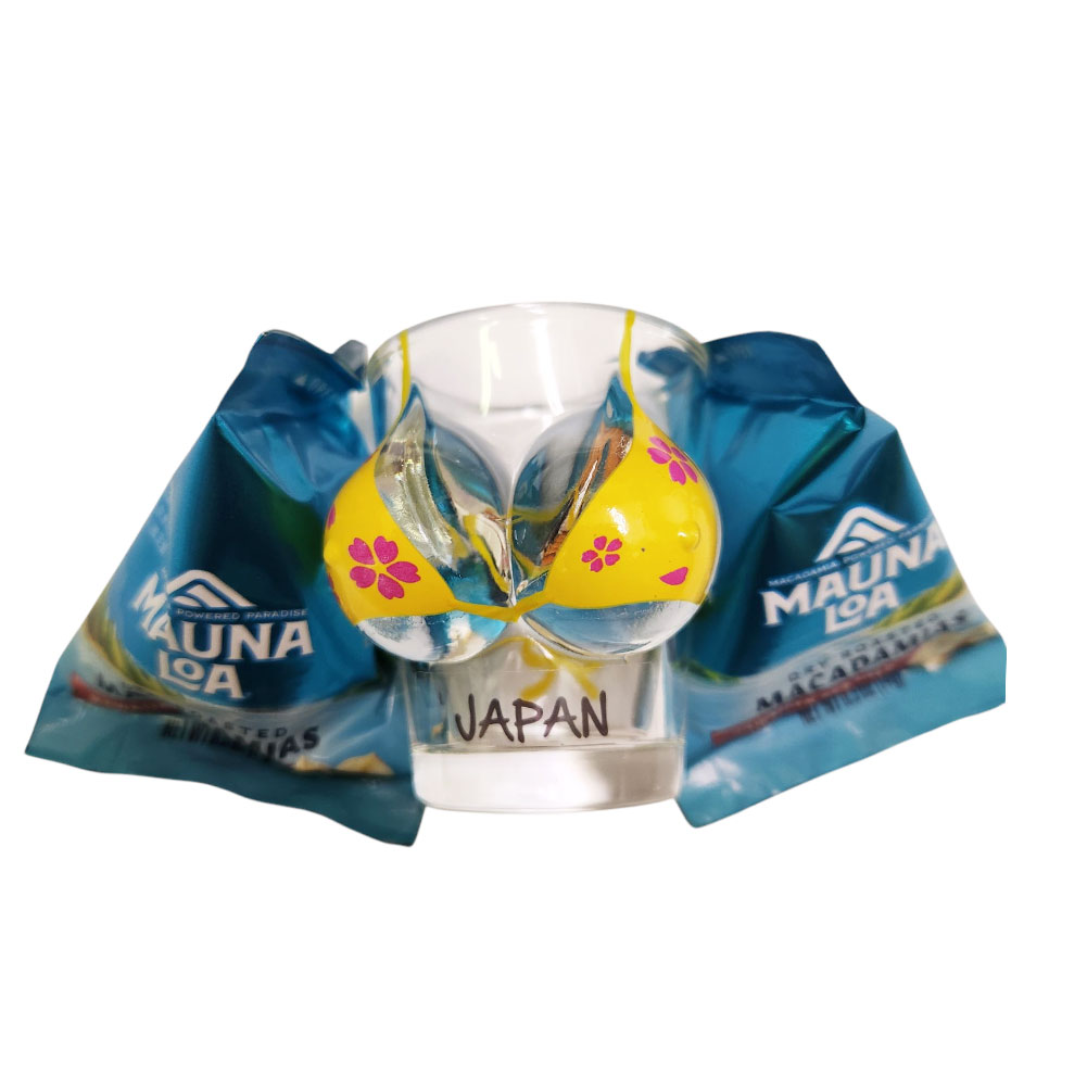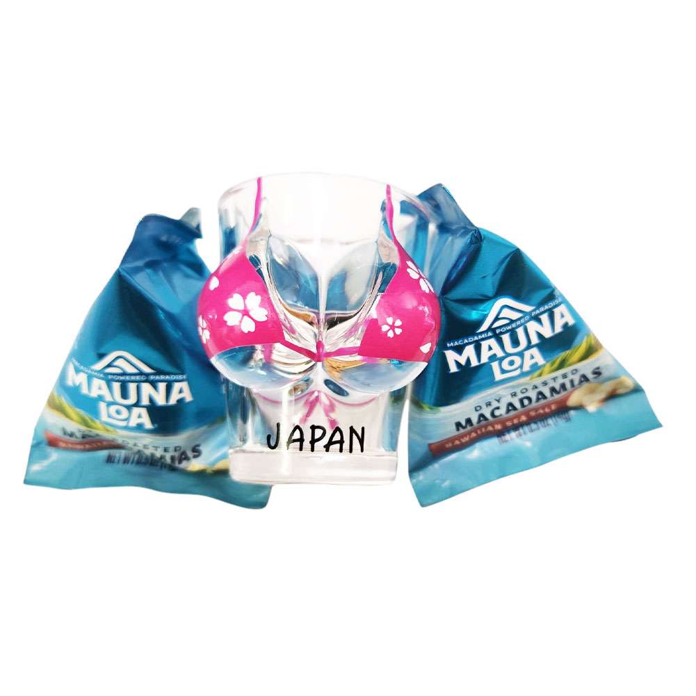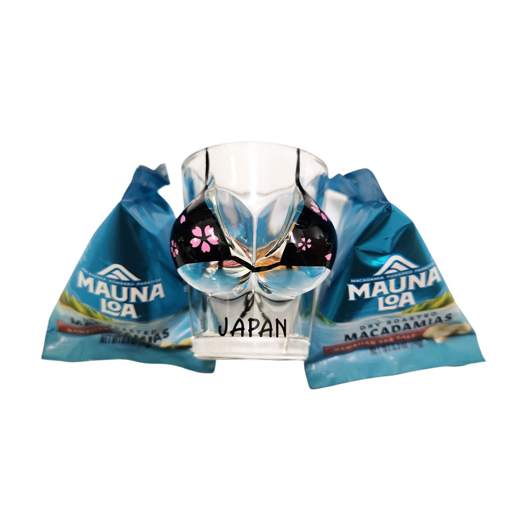【内 容】・ショットグラス×1 ・マカデミアナッツミニパック 14g×2個(お味はアソートになります)
