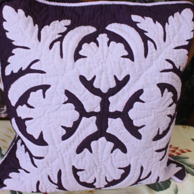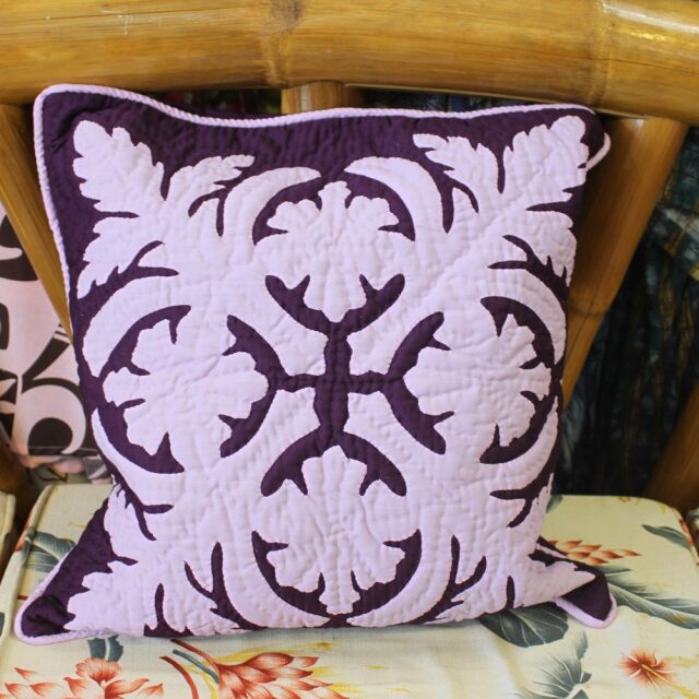 ハワイアンキルト クッションカバー 46×46 ダークパープル