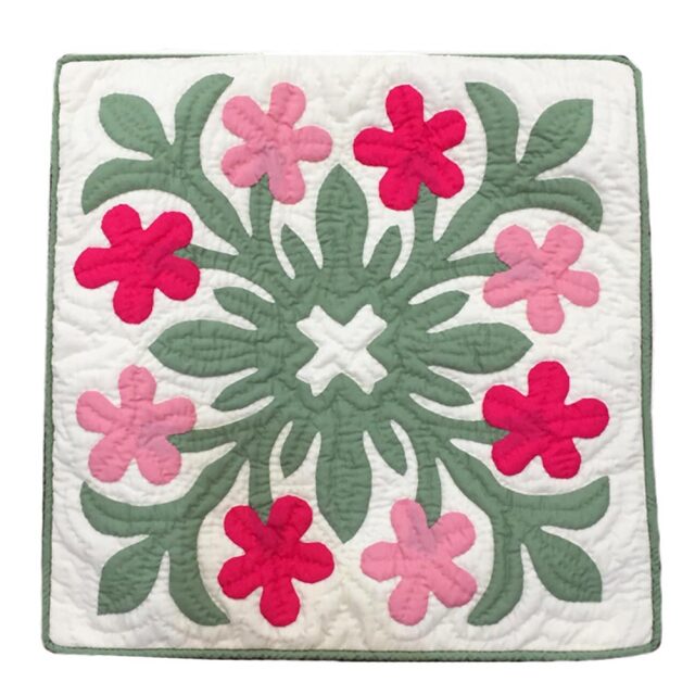 | ハワイアンキルト クッションカバー プルメリア ピンクピンク 46cm×46cm |