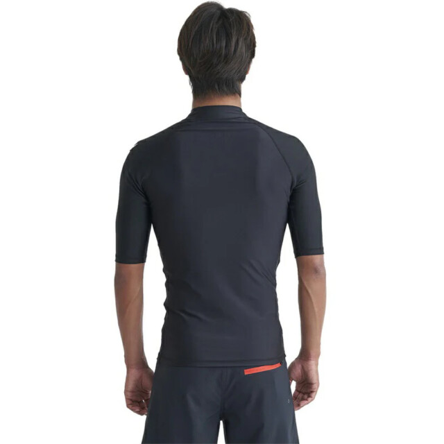 リサイクルポリエステルを使用した、縦横に強い伸縮性を持つトリコット素材の半袖ラッシュガード。