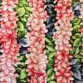 華やかな珊瑚色のレイ柄プルメリアが映えるハワイアン生地です。