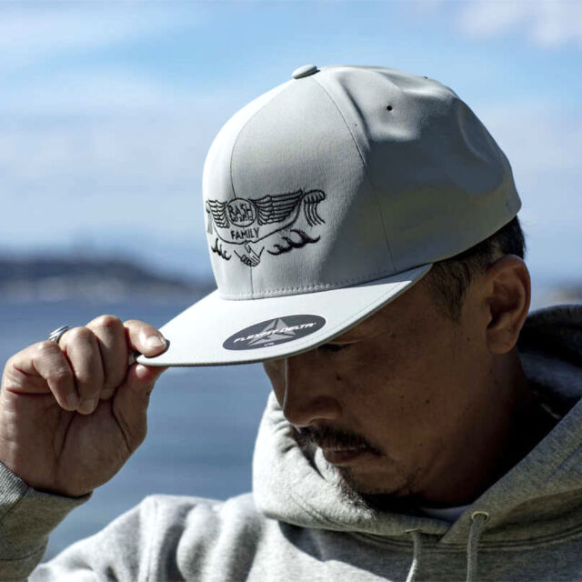RASH FAMILYロゴを配置したキャップはパーカー・スウェットと合わせてセットアップで着用できます。
