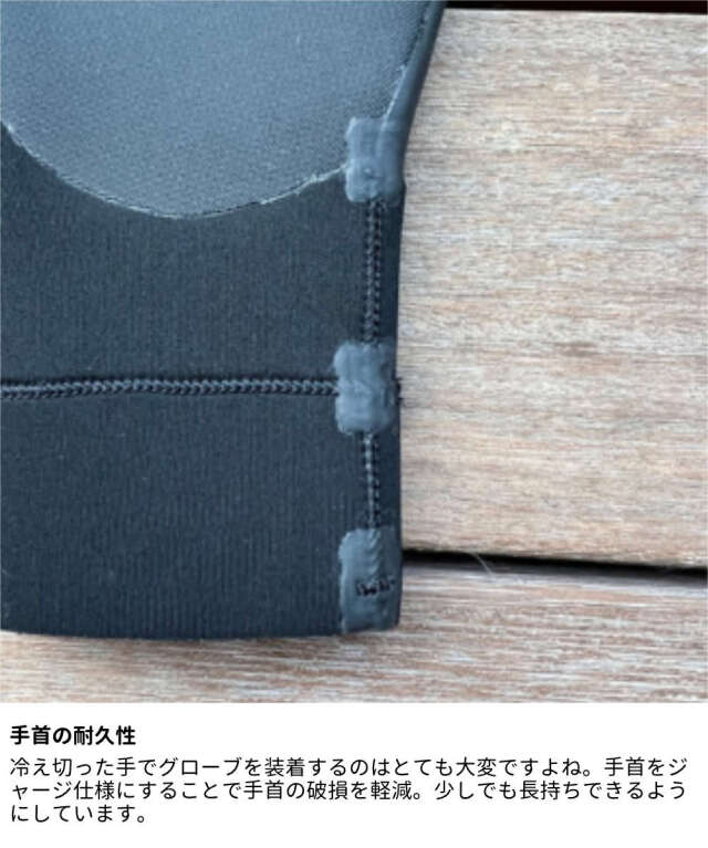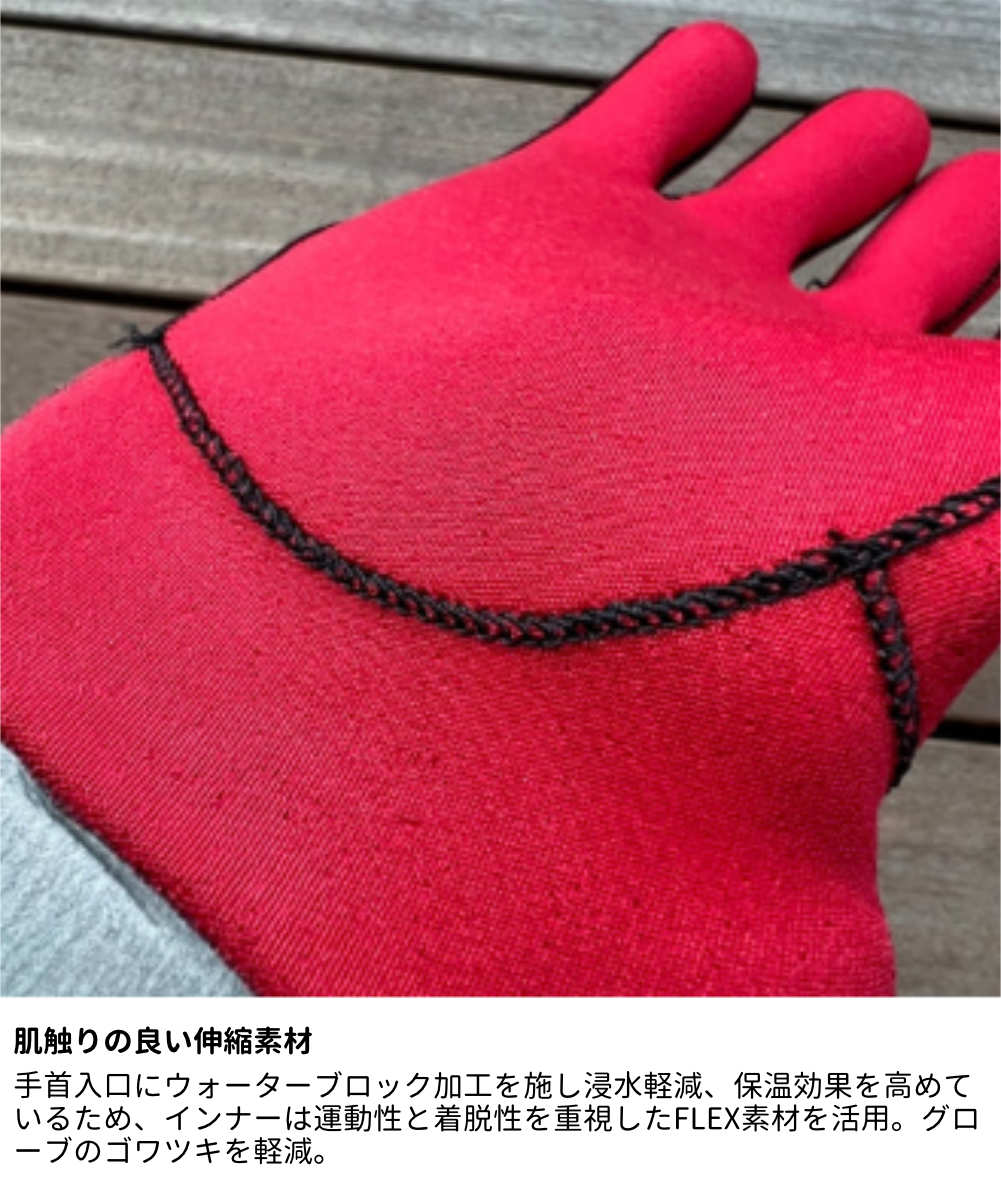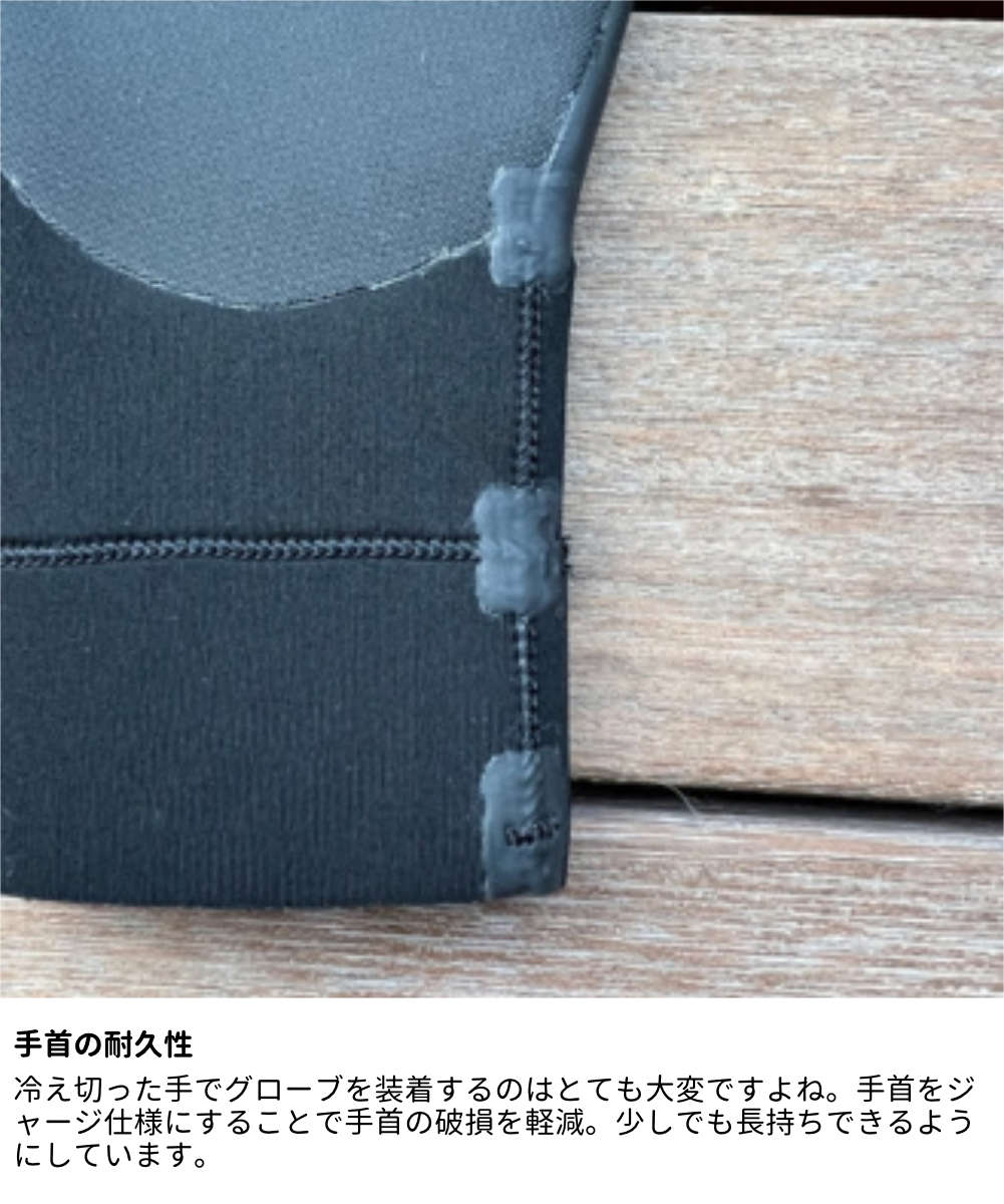冷たい海水や風をシャットアウトしつつ、自然なフィーリングとグリップ力を両立した設計です。