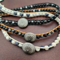 新古品 AQUA アクア コンチョ付きラップブレス 6mm玉 2連 ブレスレットメンズ パワーストーンブレスレット アクセサリー お買い得 オニキス ヘマタイト ハウライト ソーダライト 革紐 キャメル ブラック ホワイト 男性 格安