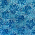 ハワイアン生地 ブルー モンステラ ユリ リリー トロピカルフラワー