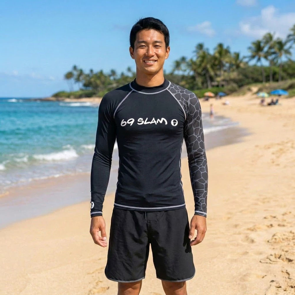 海でも街でも視線を奪う、69SLAMらしい遊び心と機能性を両立したラッシュベスト。