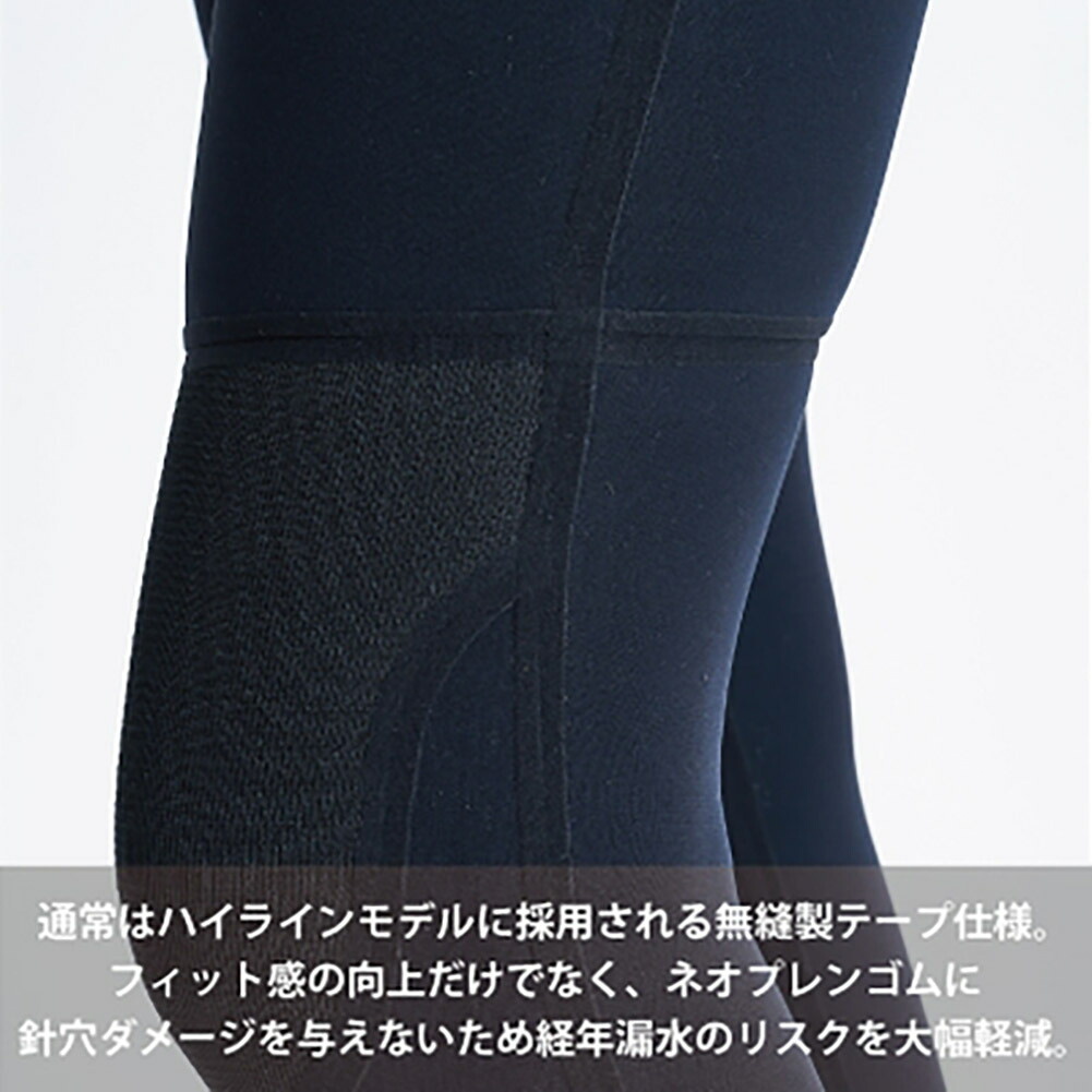 保温性が必要なボディは3mm厚で、袖と膝下は動きやすく脱ぎ着し易い薄さの2mm厚で構成されています。