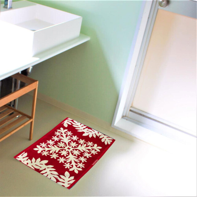 リゾート感あふれるデザイン。ハワイアンキルト柄のオシャレなバスマット。