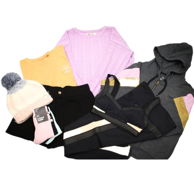 ピンクの可愛いベルスリーブのトップスの他、スポーティなレギンスやインナー、