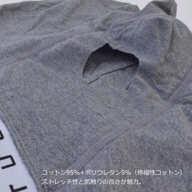 コットン95%+ポリウレタン5%(伸縮性コットン):ストレッチ性と肌触りの良さが魅力。