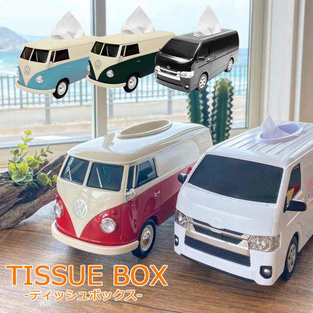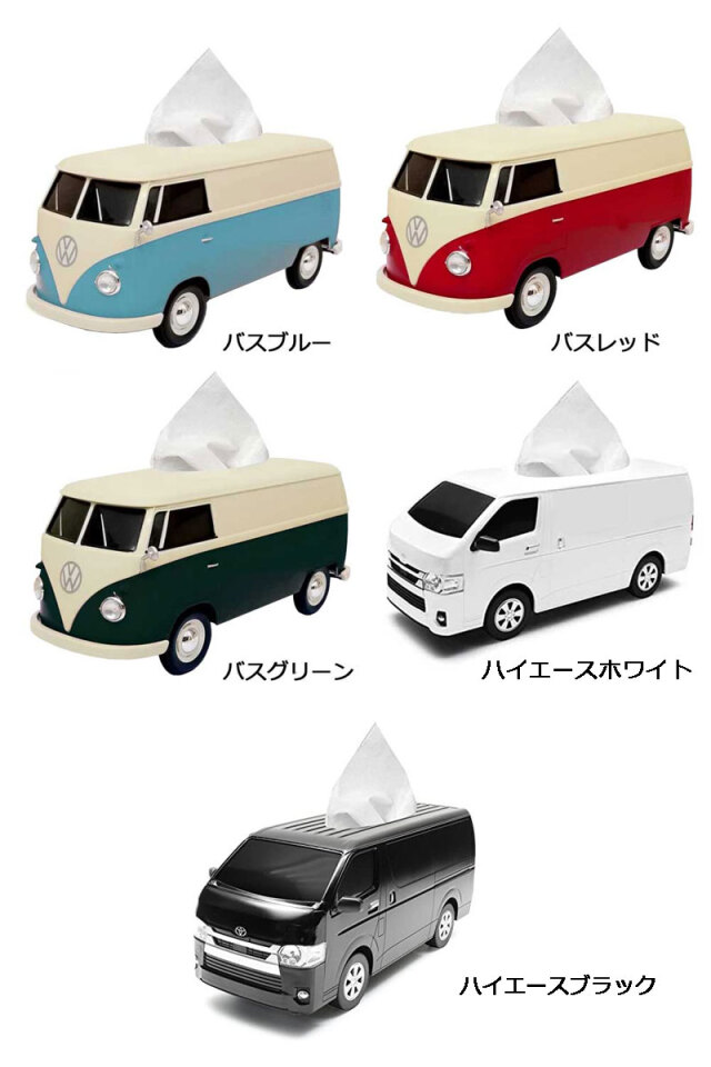 車好きのお部屋に!ワーゲンバスとハイエースがリアルでカッコイイティッシュケース !